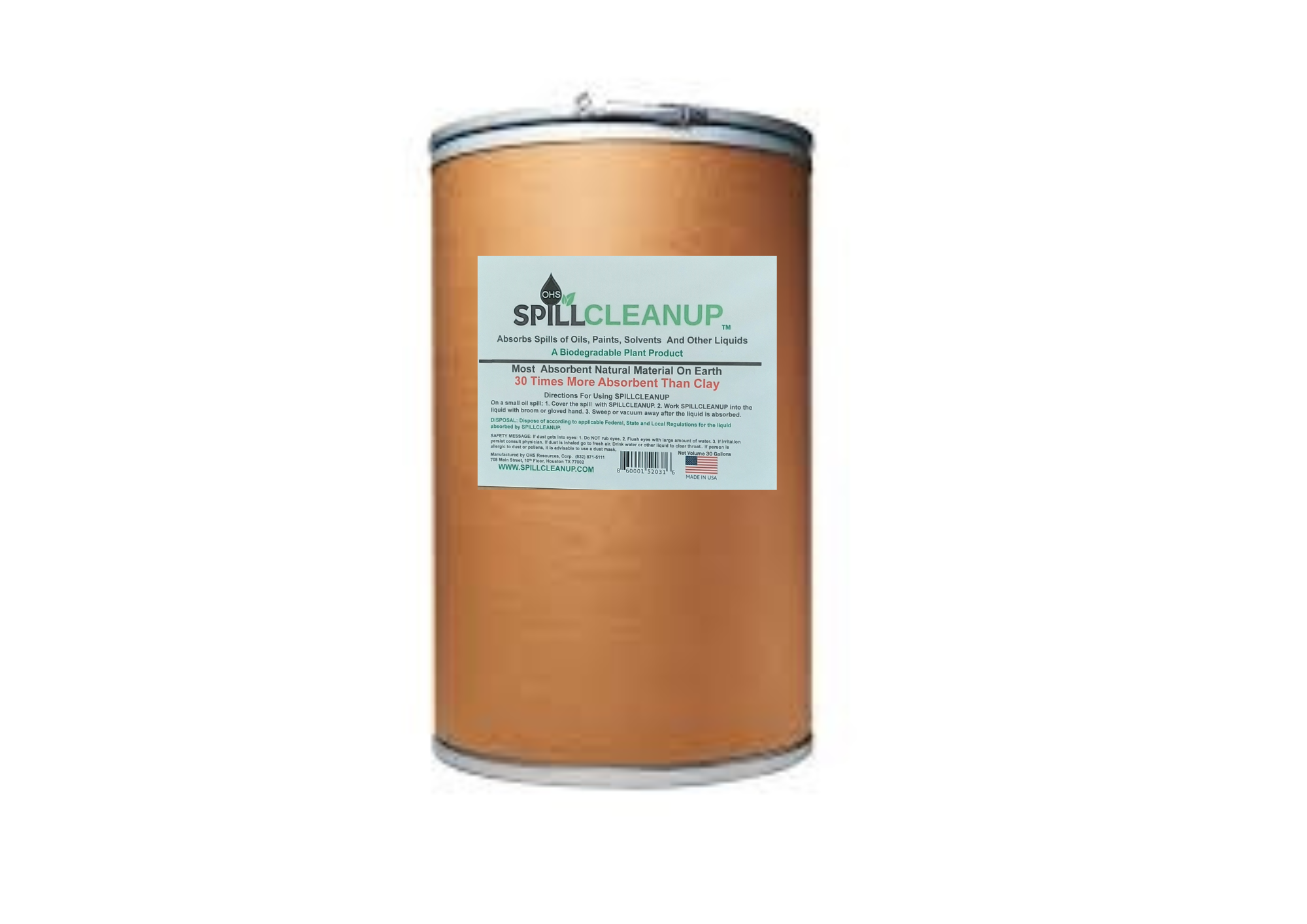 30 gallon Barrel of organic biodegradable absorbent. 30 times more absorbent than clay/ kitty litter.